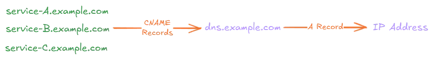 service1.example.com,service2.example.com, etc. (CNAMEto the above primary record).